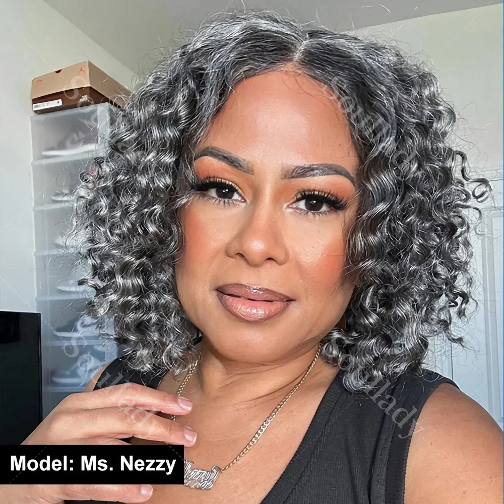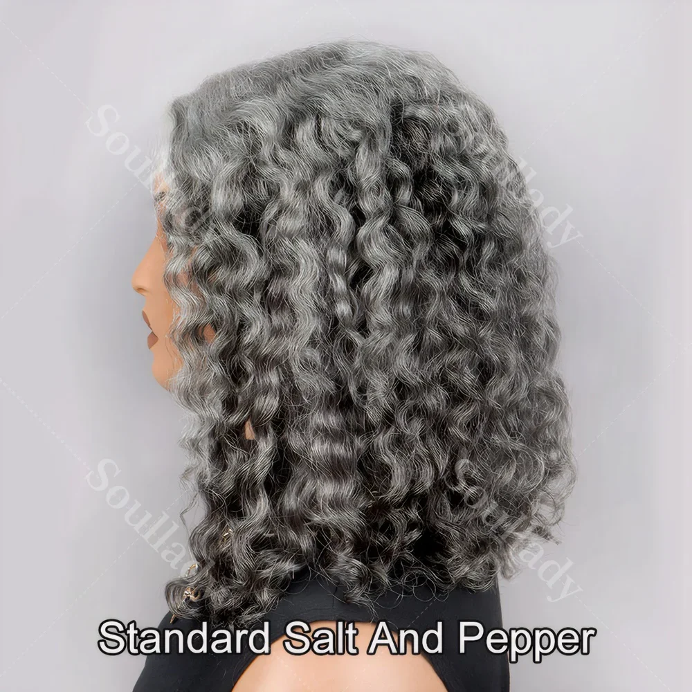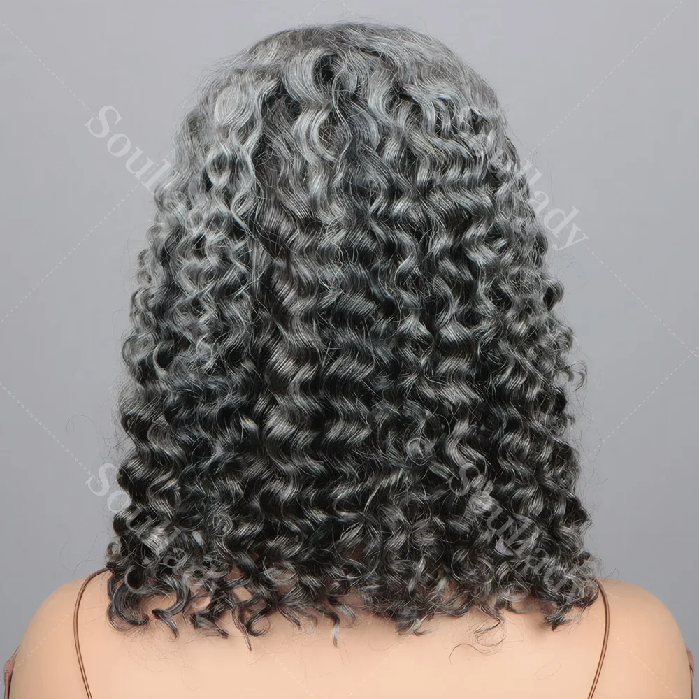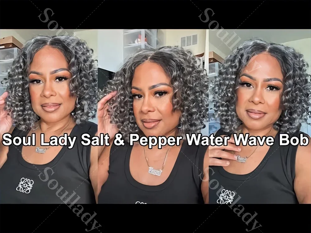 1.Item: Custom Salt and Pepper Water Wave Bob Wig Human Hair Glueless Lace Closure Wig For Seniors
