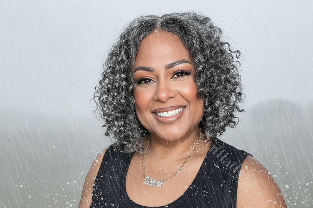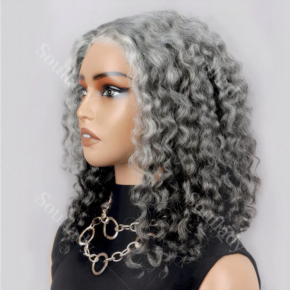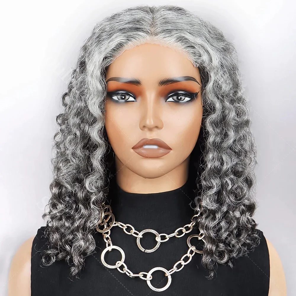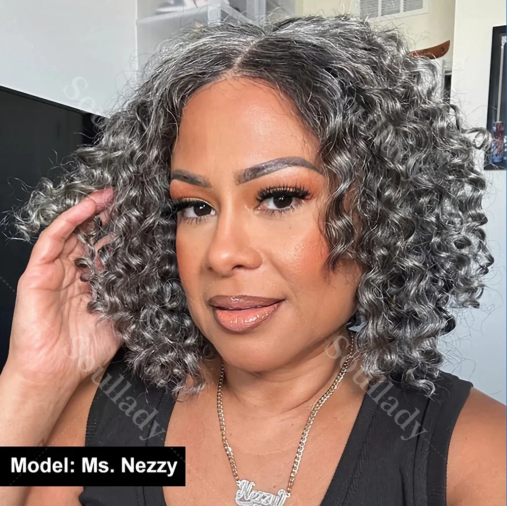 1.Item: Custom Salt and Pepper Water Wave Bob Wig Human Hair Glueless Lace Closure Wig For Seniors