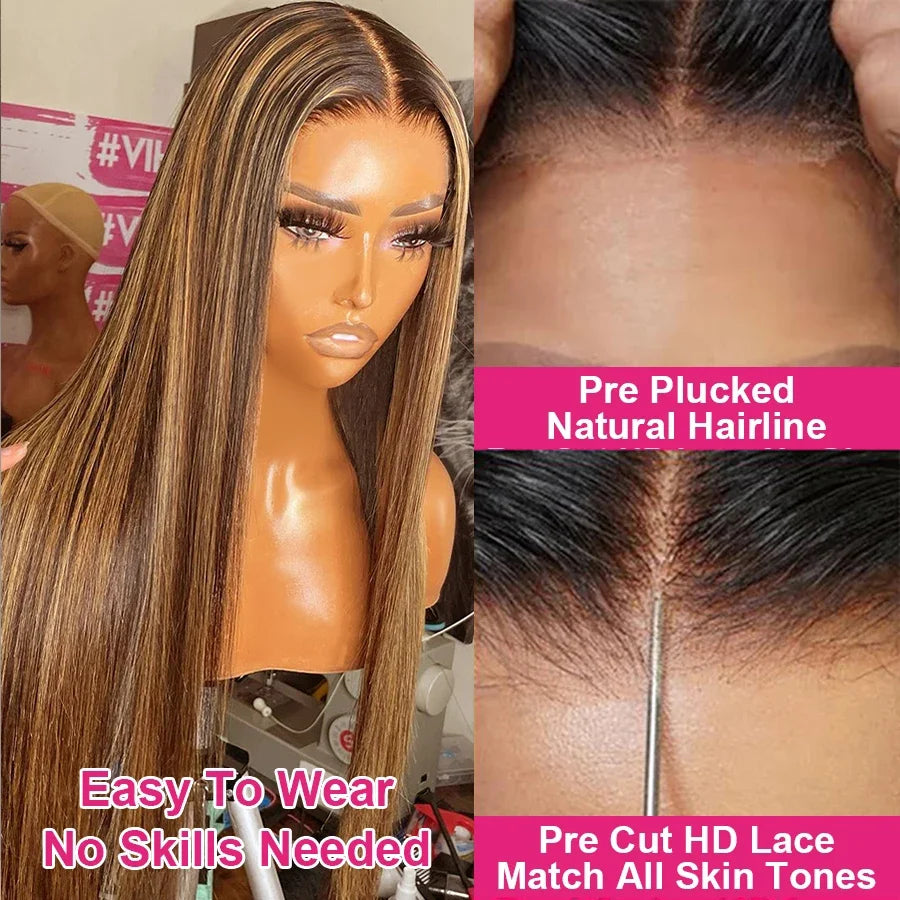 Wig Color: Highlight Lace Front Wig Ombre Human Hair