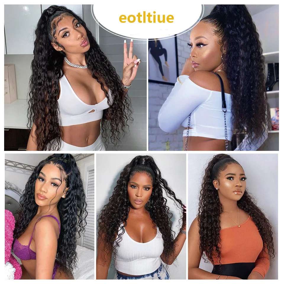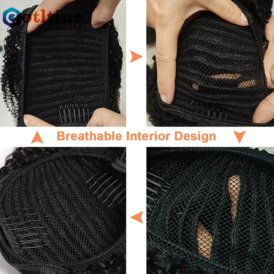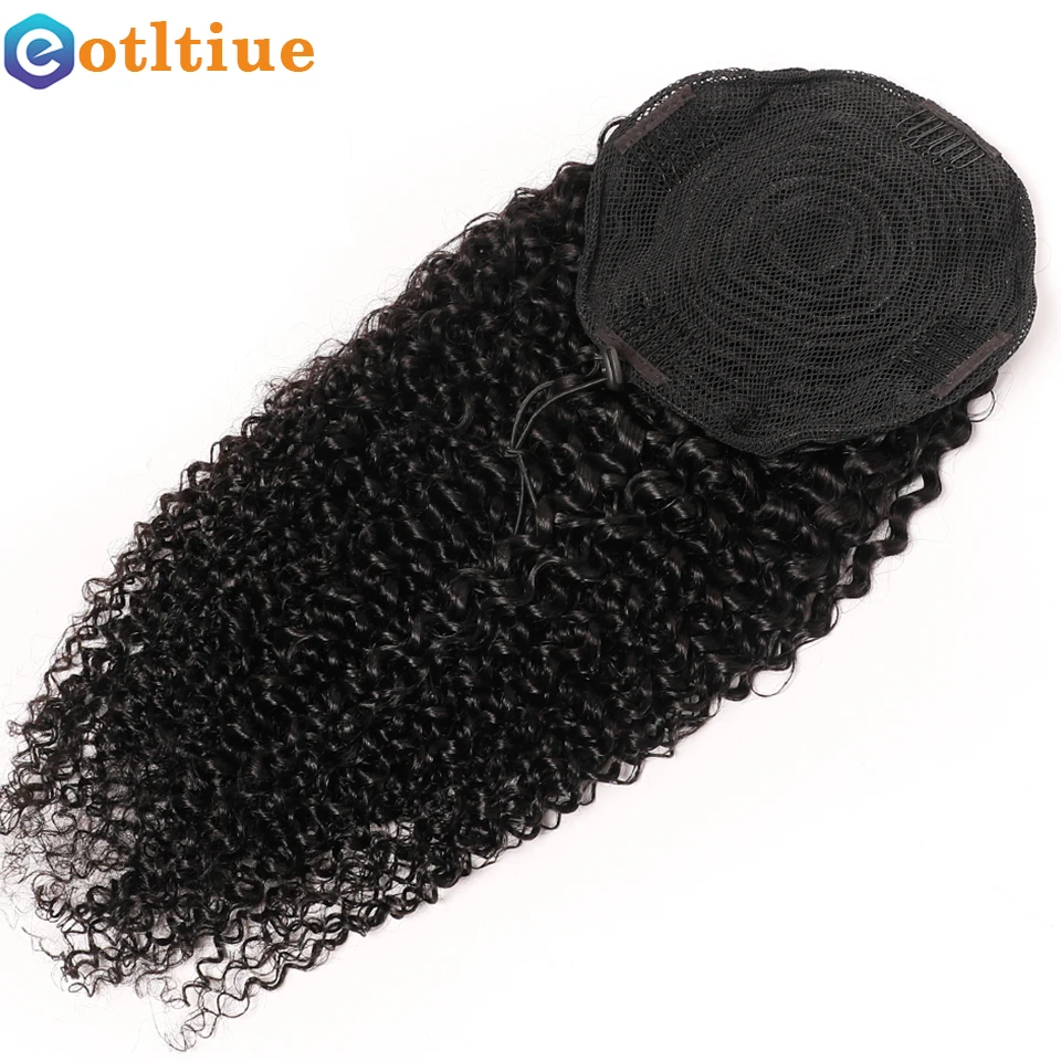 Ponytail Brazilian Human Hair Kinky Curly Hair Extensions Drawstring