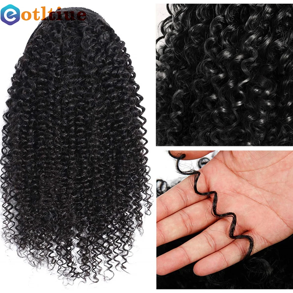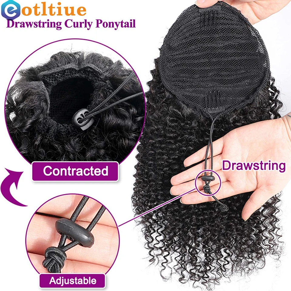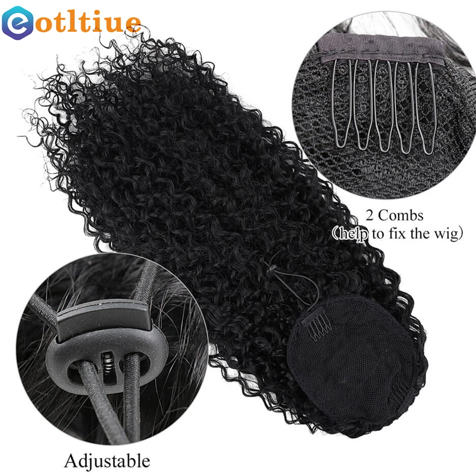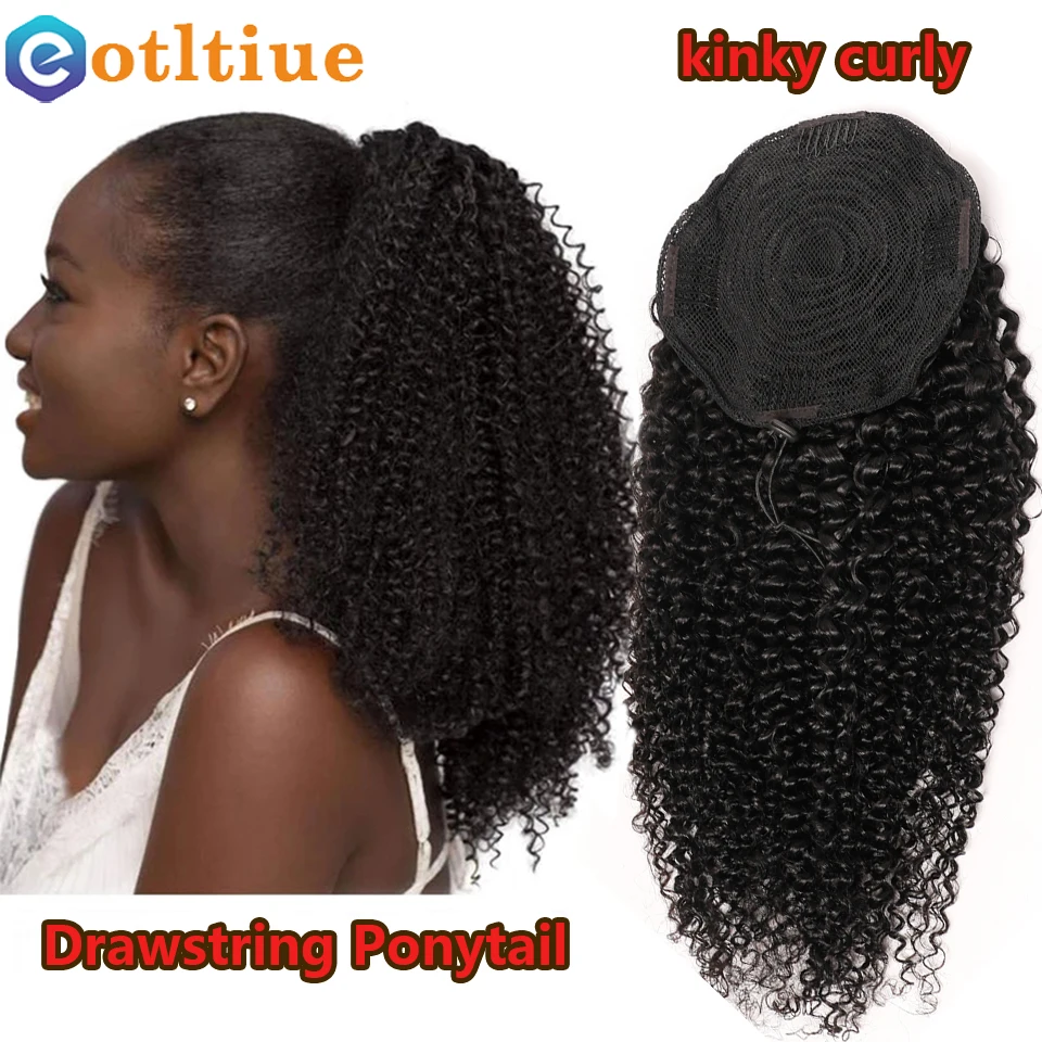 Kinky Curly Hair Extensions Drawstring Puff Ponytail Brazilian Real Human Hair Clip in Pony Tail African American Hair Extension